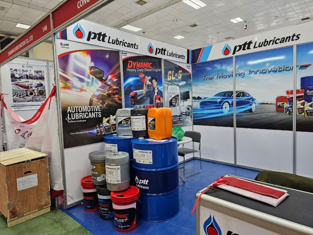 Gian hàng của dầu PTT, được rất nhiều các doanh nghiệp chú ý đặc biệt là các doanh nghiệp trong lĩnh vực gia công kim loại, săm lốp oto, nhựa ….